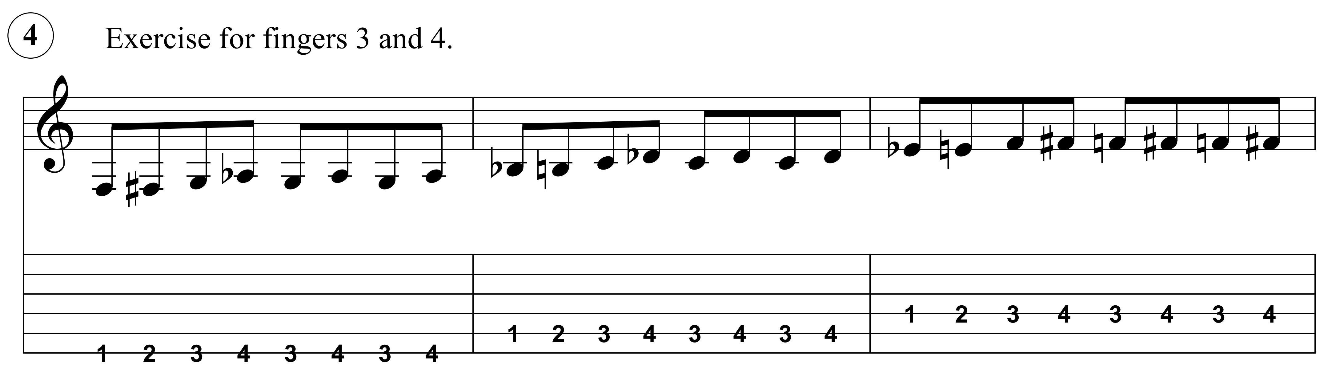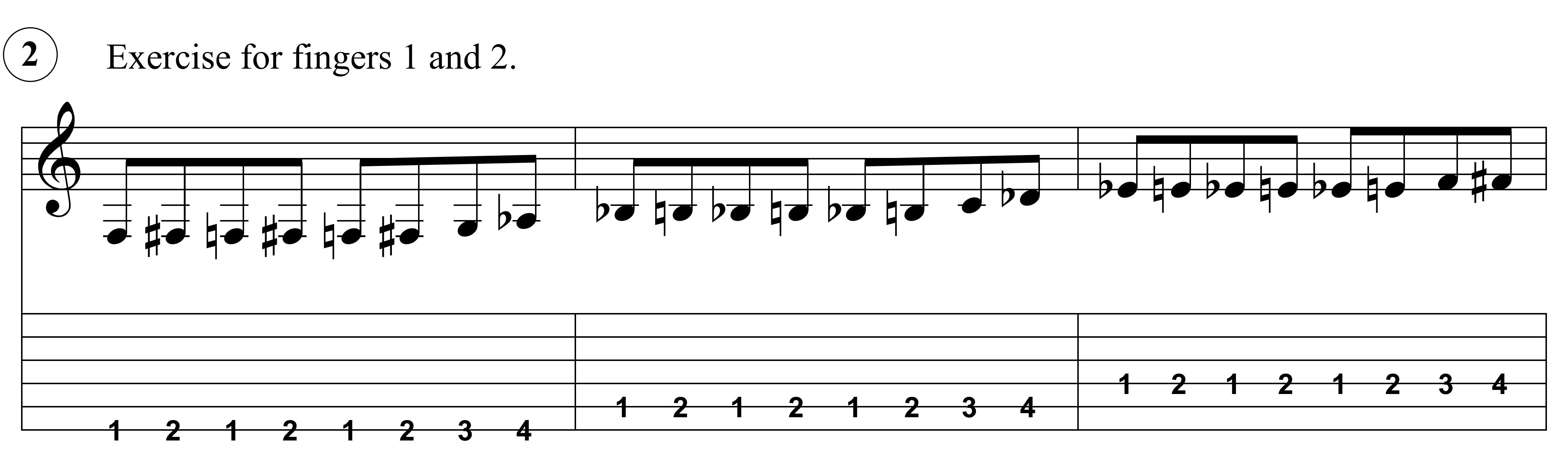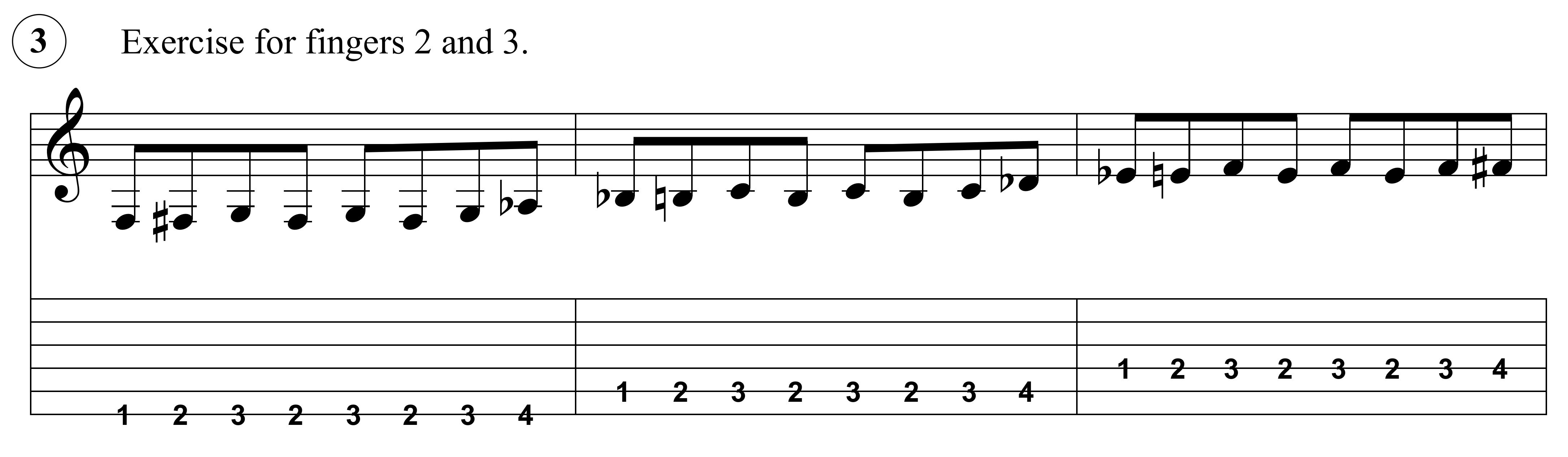 Only two more exercises and this one will focus on the second and third fingers. This coordination is a bit trickier than it is with the first two fingers so it may take a little more time to get right.